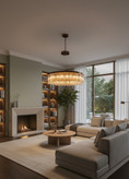 لوستر کریستالی مدرن با طراحی خاص و کریستالهای میلهای آویزان، ترکیبی از سادگی و شکوه را در دکوراسیون داخلی ایجاد میکند. این لوستر به دلیل پخش یکنواخت نور از میان کریستالها، فضا را فوقالعاده روشن و مجلل جلوه میدهد.