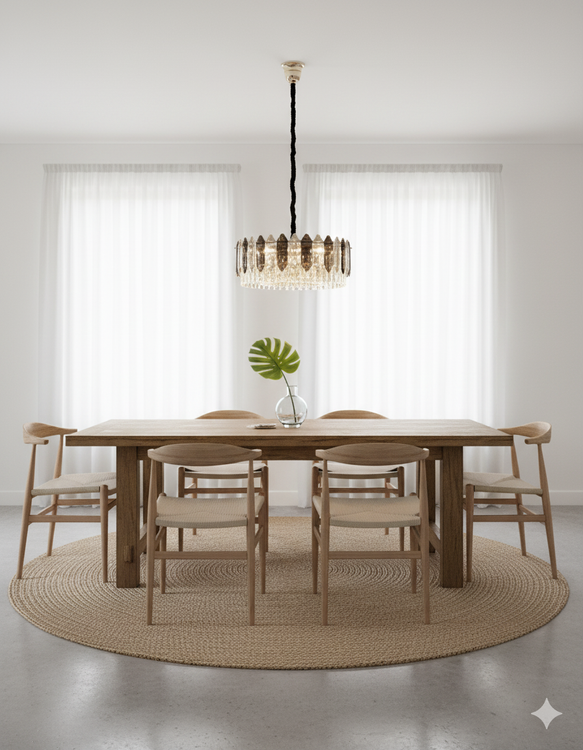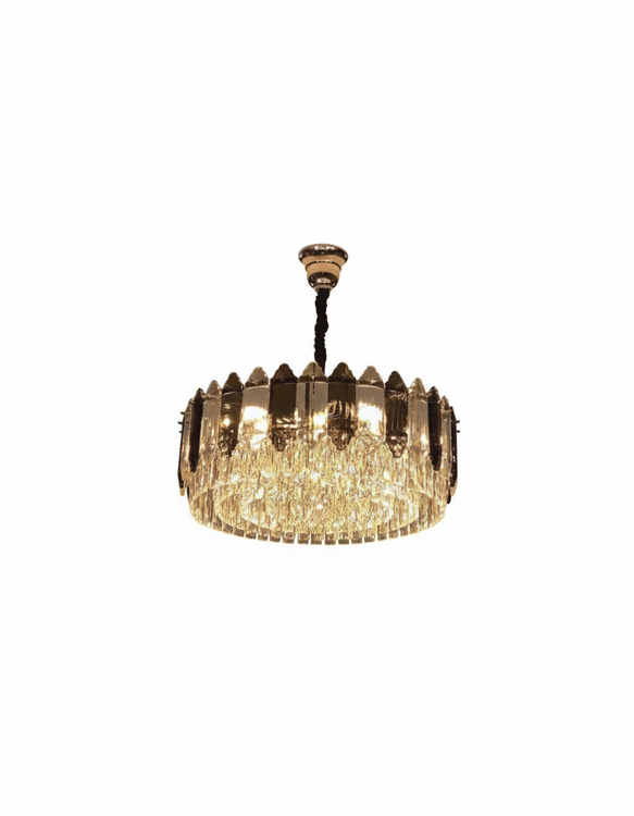 این لوستر دایرهای کریستالی با طراحی زیبا و کریستالهای منشوری درخشان، انتخابی ایدهآل برای کسانی است که به دنبال ترکیب شکوه و مدرنیته در دکوراسیون خود هستند. انعکاس نور از کریستالهای عمودی، فضایی گرم و مجلل خلق میکند و جلوهای خاص به سالن یا نشیمن شما میبخشد.