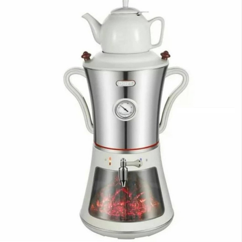 با سماور برقی دسینی مدل 2222، تجربهای بینظیر از مهماننوازی را به خانهتان بیاورید! این سماور با طراحی شیک و عملکرد قدرتمند، چای را سریع و با طعمی دلچسب آماده میکند. سماور برقی 3 لیتری 2300 وات دسینی مدل 2222 از کاربردی ترین وسایل تهیه نوشیدنی آشپزخانه است که سرعت کار شما را برای تهیه چای یا آب جوش بالا خواهد برد. طراحی ظاهری این سماور برقی دارای پنل طرح شومینه است که ظاهر سماور برقی دسینی را بسیار منحصر به فرد کرده است. سماور برقی مدل 2222 دسینی با توان مصرفی 2300 وات به خوبی چای خوش طعمی را برای شما آماده خواهد کرد. حجم کتری 3 لیتر و حجم قوری 0.8 لیتر میباشد که مناسب تهیه چای برای چندین نفر است همچنین قابلیت هایی مانند سیستم قطع کن خودکار، سیستم گرم نگهدارنده و … را دارد که به خوبی ارزش خرید محصول را بالا برده است.مناسب برای هر جمع دوستانه و خانواده، برای مصارف خانگی اداری و تجاری، دسینی 2222 انتخابی هوشمندانه برای لحظات گرم و صمیمی شماست. فرصت را از دست ندهید و همین حالا خرید کنید!