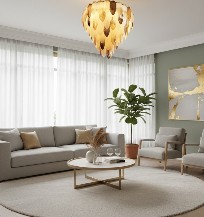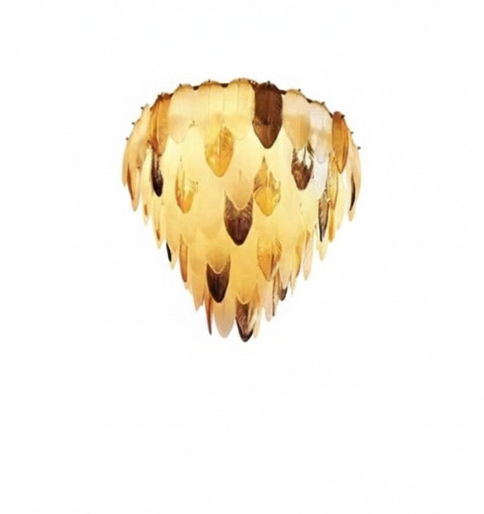 لوستر برگ طلایی با طراحی منحصربهفرد و الهامگرفته از فرم برگهای طبیعی، انتخابی خاص برای افرادی است که به دنبال لوستری متفاوت و هنری هستند. رنگ طلایی و کهربایی قطعات، جلوهای گرم و لاکچری ایجاد کرده و نور ملایم و چشمنوازی به فضا میبخشد.