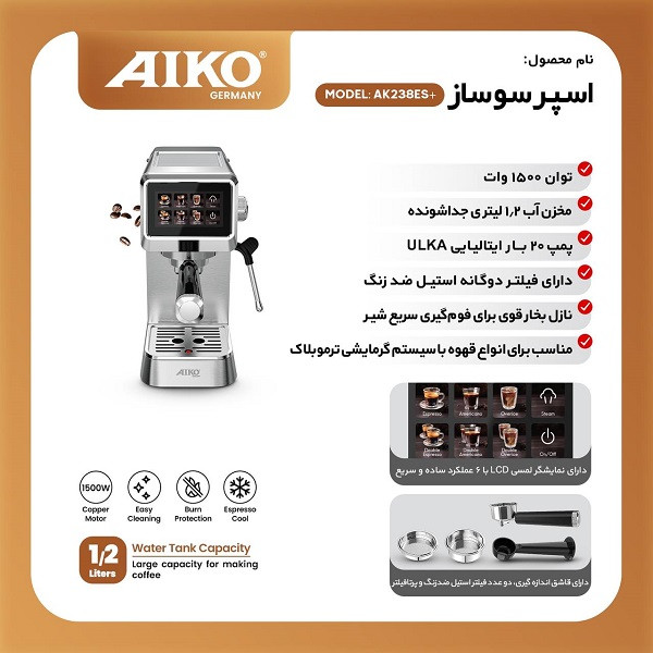 اسپرسو ساز 1200 میلیلیتر آیکو مدل 238plus