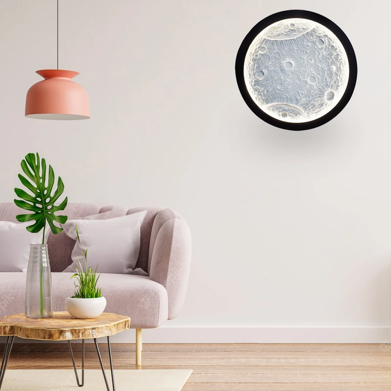 تابلو ماه برجسته مدل نوری کد ۱ جنس ام دی اف درجه یک مواد برجسته کاری از جنس تکسچر رنگ ماه سفید رنگ ام دی اف مشکی رنگ نور نچرال(رنگ بین نور سفید و زرد) قابل استفاده در منزل. تالار. رستوران. کافی شاپ و .....