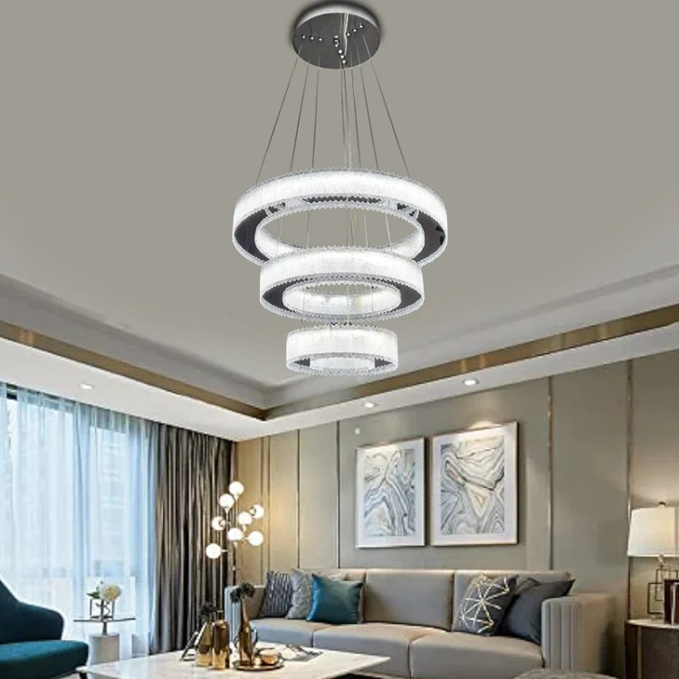 لوستر مدل مدرن سه حلقه با ابعاد ۴۰/۳۰/۲۰سانت طراحی شیک انتخابی ایده آل برای فضاهای مدرن و لوکس است این لوستر با سه حلقه با کیفیت بالا نورردهی مناسبی را ارائه میدهد که به راحتی فضای اتاق را روشن میکند با چهار حالت نورردهی مختلف از جمله شب خواب امکان تنظیم نور برای هر موقعیت و فضایی فراهم است ارتفاع لوستر تا ۸۰ سانتیمتر قابل تنظیم بوده و به شما اجازه میدهد تا بر اساس ارتفاع سقف و نیاز خود آن را تنظیم کنید همچنین ریموت کنترل همراه این لوستر استفاده از آن را برای بسیار آسانتر کرده و شما را قادر میسازد تا نورردهی را از راه دور مدیریت کنید لوستر مدل مدرن سه حلقه با وزن ۱۹۰۰گرم و طراحی خاص خود هم به عنوان یک منبع نور کارآمد و هم به عنوان یک عنصر دکوراتیو زیبا فضای زندگی شما را به سطح جدیدی از زیبایی و کارایی میرساند