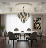 متاسفانه این کالا در حال حاضر موجود نیست. میتوانید از طریق لیست بالای صفحه، از محصولات مشابه این کالا دیدن نمایید.این لوستر کریستالی مدرن با طراحی منحصر به فرد برگمانند، جلوهای لوکس و چشمگیر به فضای شما میبخشد. کریستالهای آن به صورت چندلایه و آبشاری آویزان شدهاند که علاوه بر انعکاس زیبا و درخشش نور، حس شکوه و جذابیت خاصی به دکوراسیون داخلی میدهد.